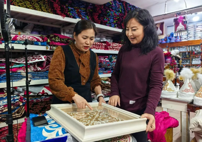 在阿勒泰地区富蕴县,有一位名叫沙马勒·阿曼太的女性,她以哈萨克族传统的毛毡珠绣为笔,以真挚的情感为墨,绘制出一幅幅充满生活气息的艺术作品。她不仅是毛毡珠绣的制作者,更是这一传统手艺的坚定传承者和创新者。