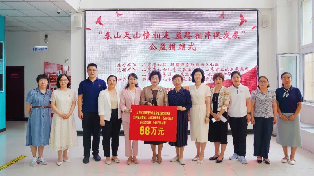 新疆妇联举行“泰山天山情相连 益路相伴促发展”公益活动捐赠式